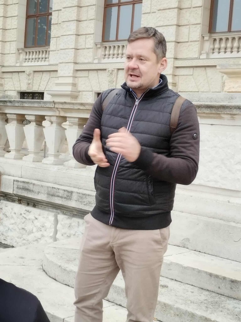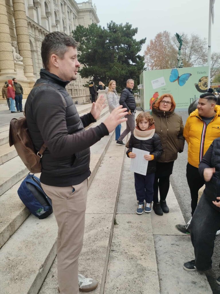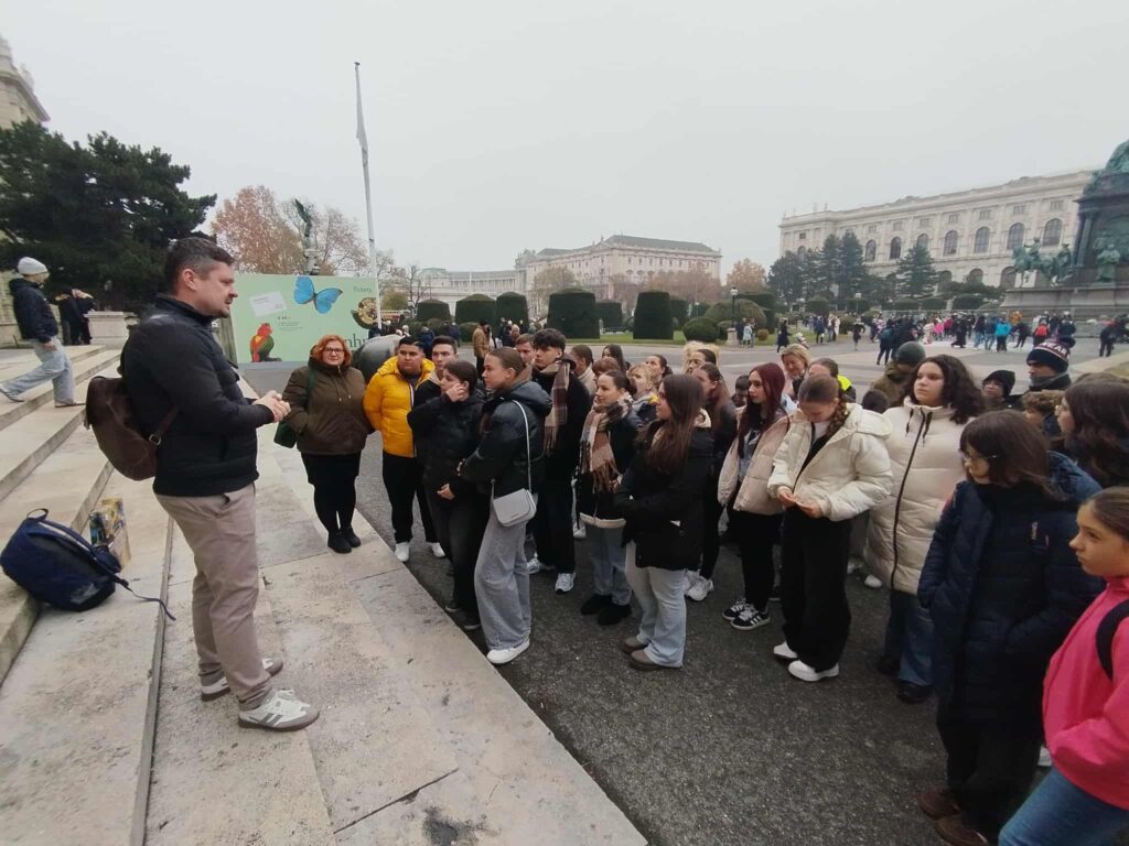 A múzeumba való belépés előtt a Mária Terézia téren találkoztunk Dr. Kiss Attila kutatóbiológussal, gimnáziumunk volt diákjával, a Bécsi Orvostudományi Egyetem Sebészeti Kutató Intézetének docensével, a Szív- és érrendszeri egység vezetőjével. Attila életpályája is példaként szolgál arra, hogy akaraterővel és szorgalommal a biztos alapokat nyújtó Móriczból indulva is bármilyen gyermekkori álmot el lehet érni.